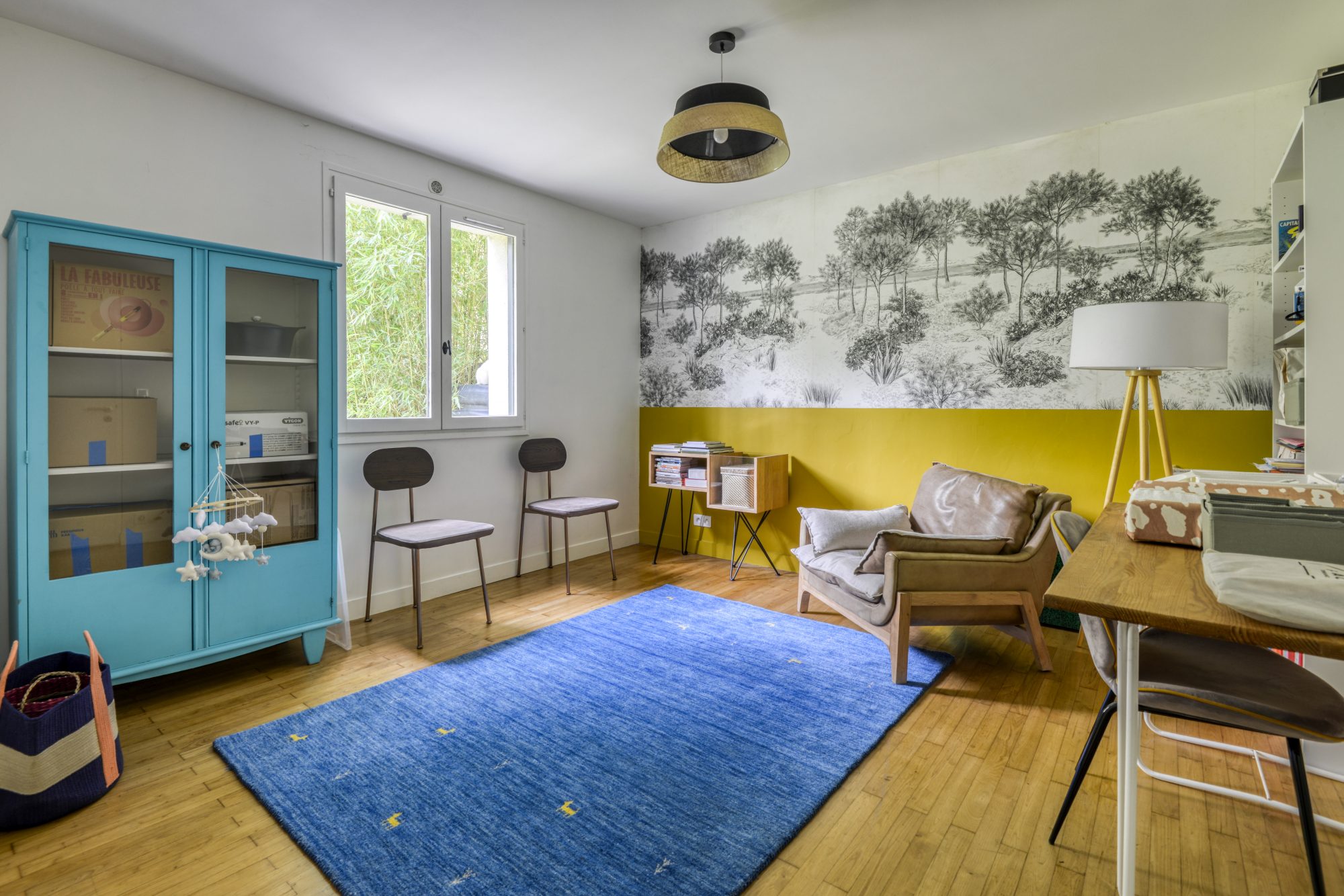 À l’étage, trois belles chambres accueillent famille et invités. Elles se partagent une salle de bain équipée d’une baignoire et d’une douche, tandis qu’une mezzanine propose un espace idéal pour télé-travailler, lire ou jouer.